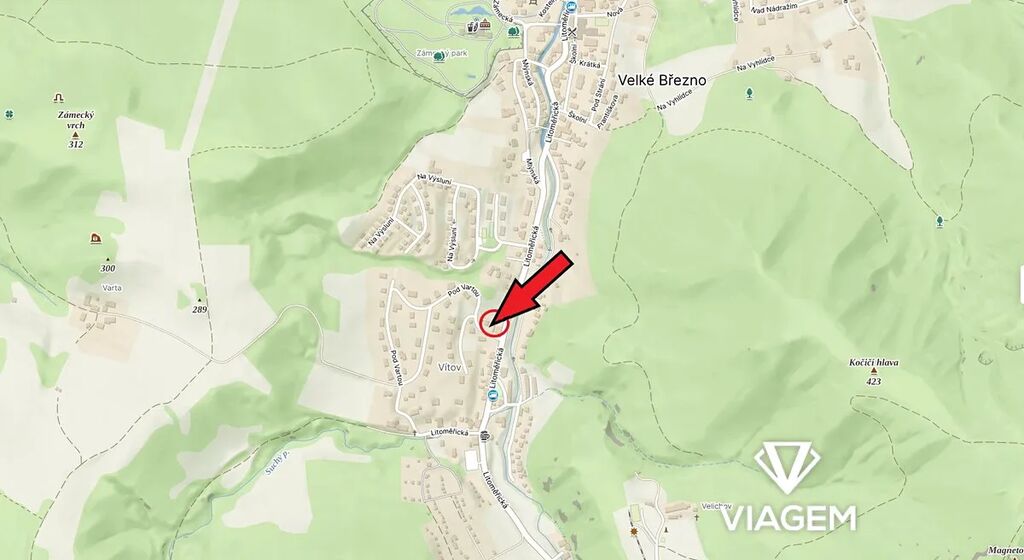 Obec Velké Březno v dosahu s občanskou vybaveností – obchod, škola, restaurace.