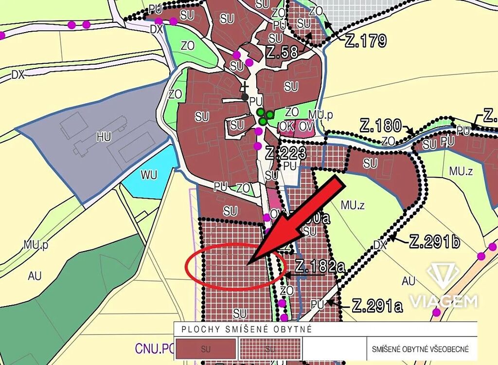 ➡️ Navrhovaný stavební pozemek v územním plánu.