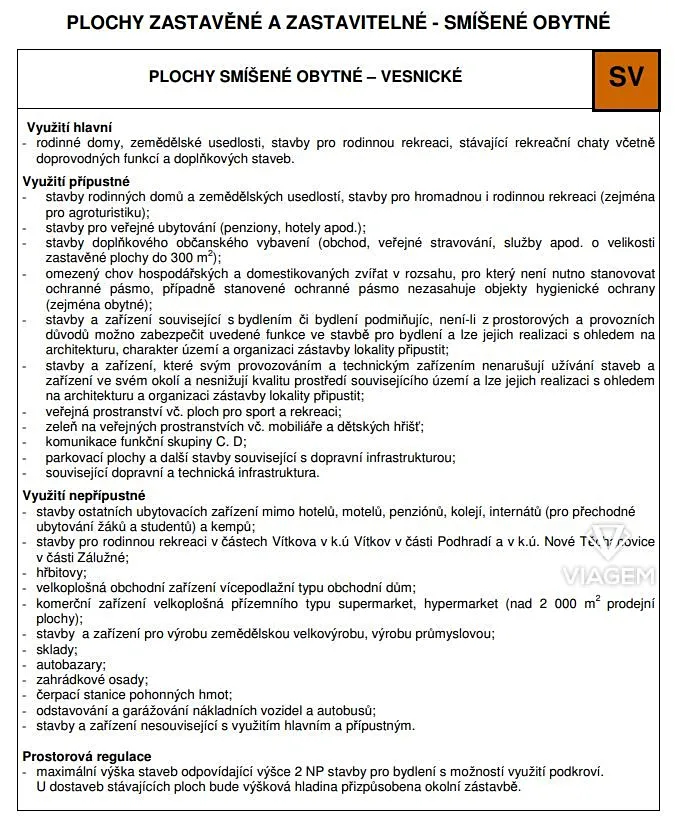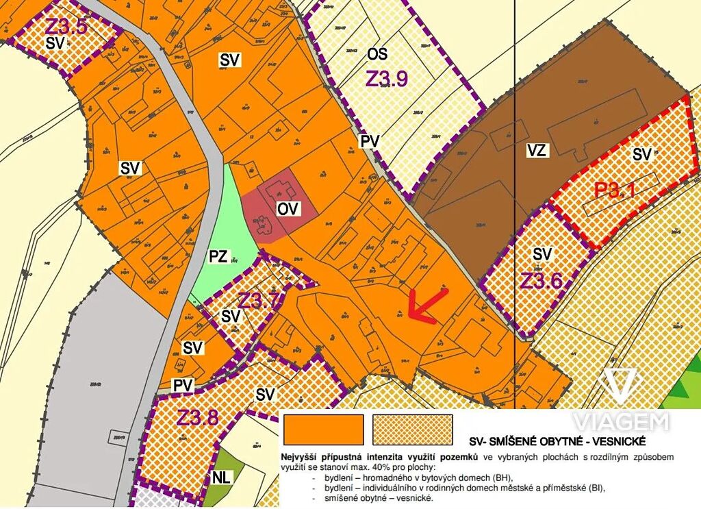 Míra zastavitelnosti pozemků: 40 % (2 NP s možností využití podkroví)