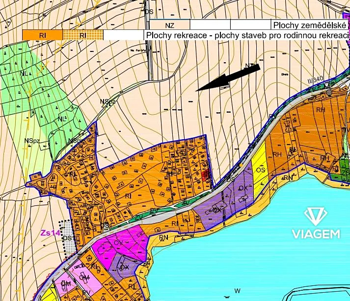 Pozemek navazuje na plochy určené k rekreaci a je přístupný obecní cestou.