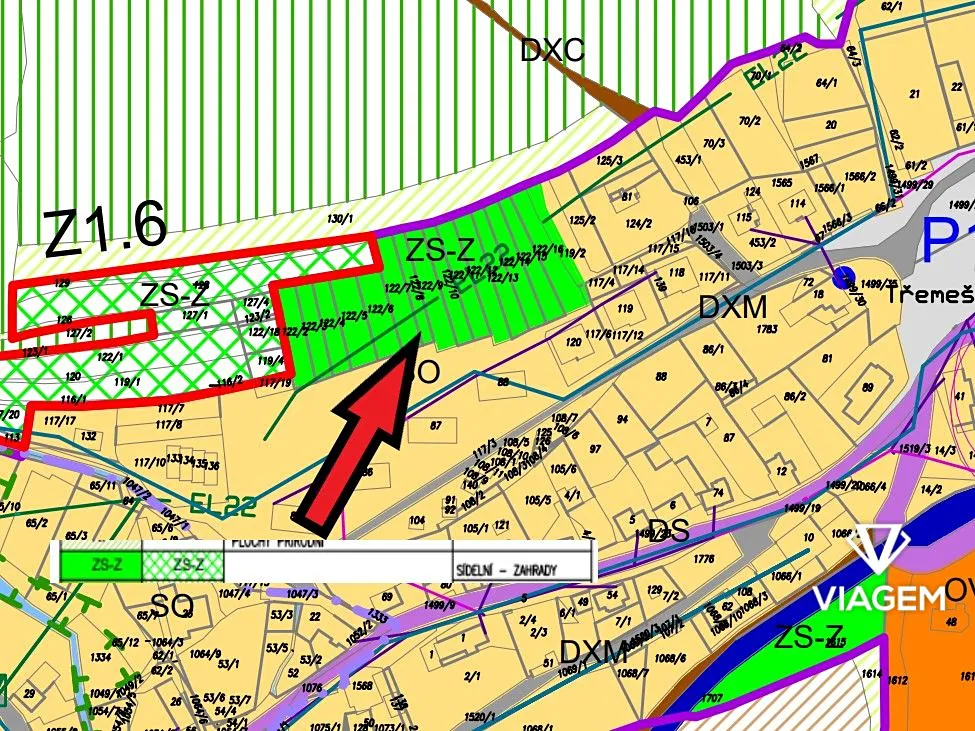 Dle platného územního plánu je pozemek zařazen do ploch ZS-Z – plochy zeleně sídelní – zahrady. To znamená, že jej lze využít nejen k rekreačním a pěstitelským účelům, ale také je zde možné umístit menší doplňkovou stavbu do 25 m² (např. zahradní domek nebo kůlnu na nářadí). Povolená výška takové stavby může být až 4,8 m nad upravený terén.