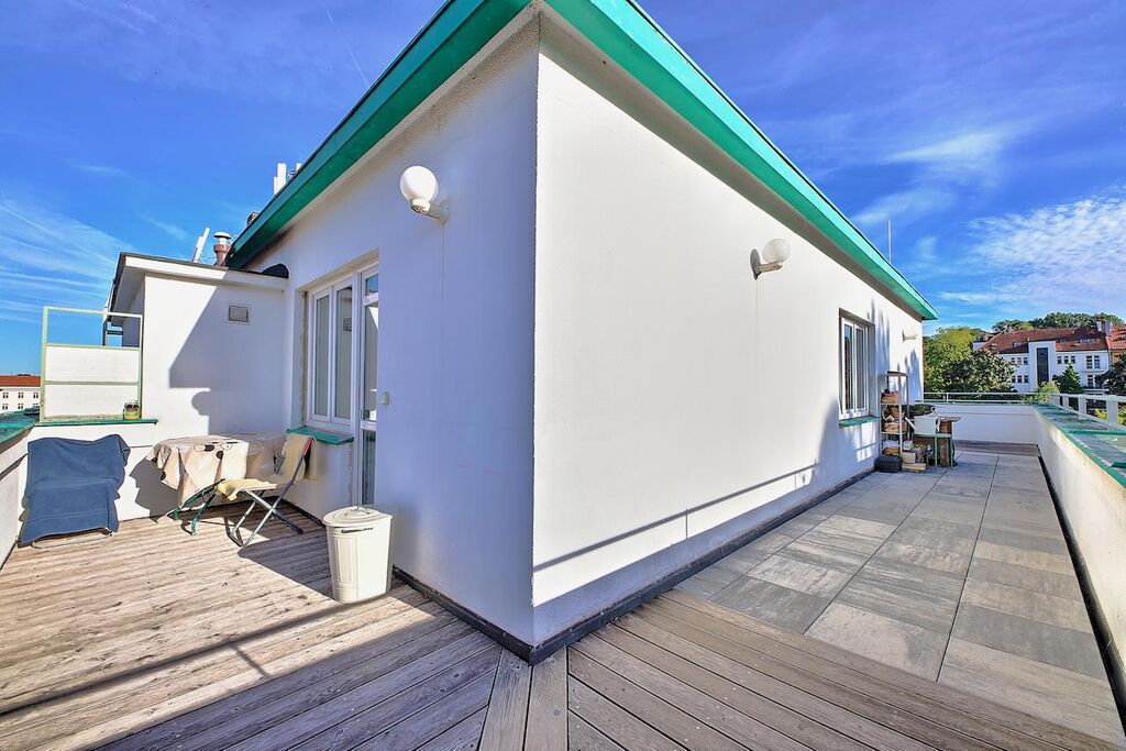 K koupi nabízím krásný, světlý byt o dispozici 2+1 s obrovskou terasou, který se nachází v posledním patře dobře udržovaného funkcionalistického domu bez výtahu z roku 1942. Dům i byt prošly v roce 2008 kompletní rekonstrukcí.