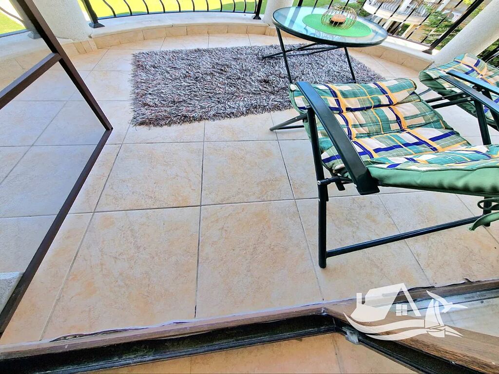 Představte si, že otevřete dveře do svého nového domova a první, co vás uchvátí, je prostor a světlo, které zalévá obývací pokoj spojený s kuchyňským koutem. Tento třípokojový apartmán o velikosti 94 m² se nachází na čtvrtém patře šestipodlažního komplexu Royal Sun v srdci Slunečného pobřeží, pouhých 400 metrů od moře, a nabízí harmonii komfortu a středomořské atmosféry.