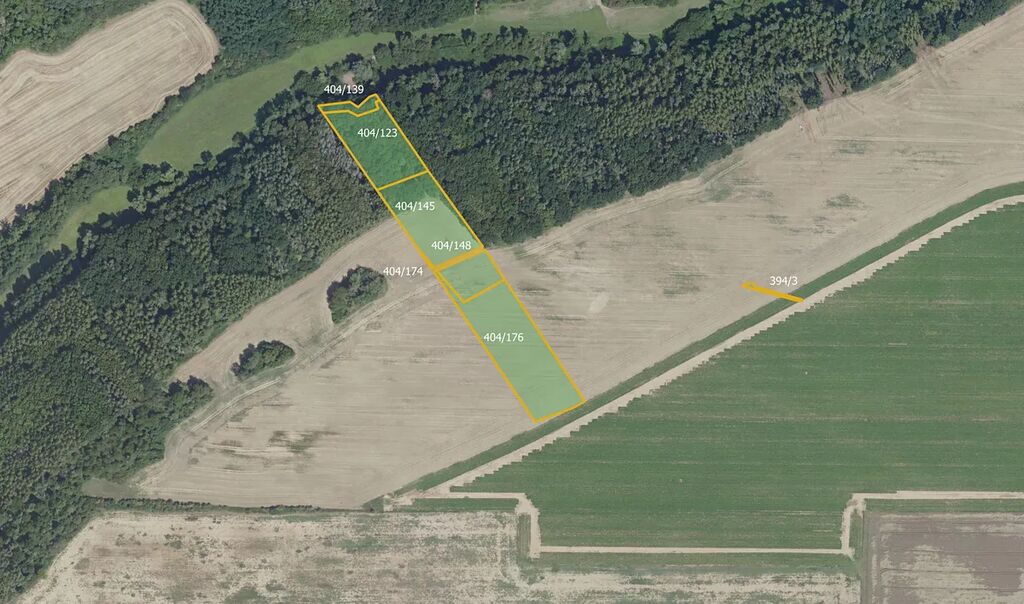 Umístěním se jedná o ornou půdu s navazujícím lesem. Obdělávaná plocha leží v rovině. Lesem protéká potok, který tvoří přirozenou hranici. Celková výměra je 19 882 z toho je k prodeji je 19 741 m2. Většinu výměry tvoří lesní pozemky (11 277 m2), dále pak orná půda (7 918 m2) a zbytek ostatní plocha (546 m2).