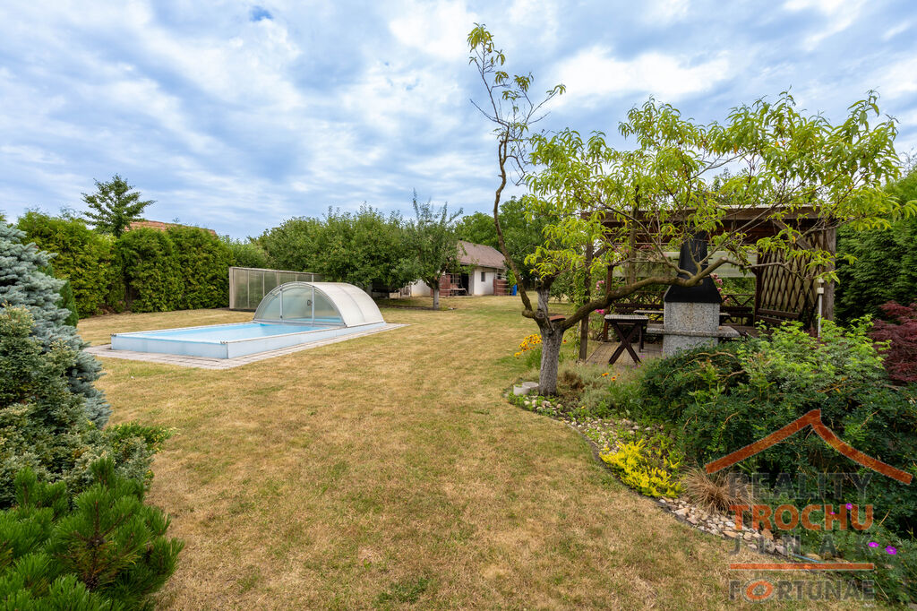 Nabízíme k prodeji rodinný dům 5+1 v obci Převýšov, okr. Hradec Králové. Tento patrový rodinný dům z roku 1988 je ve velmi dobrém stavu a v průběhu let prošel dům rekonstrukcí, což poskytuje ideální možnosti pro rodinné bydlení nebo investici s dobrou perspektivou. Dům disponuje celkem třemi podlažími, včetně podzemního, kde se nachází další úložné prostory s garáží, kotelnou, prádelnou, skladem a sklepem. Užitná plocha domu je 157 m2 s možností další vestavby v prostorách půdy. Dům stojí na velmi prostorném pozemku 1439 m2. V 1.NP se nachází ložnice, dětský pokoj, obývací pokoj s kuchyní a spíží, chodba, koupelna a WC. Z obývacího pokoje je vstup na prostornou terasu s výhledem do zahrady. 2. NP je jen částečně využité a nachází se zde 2 pokoje s chodbou, která vede na půdu. V domě nová plastová okna s izolačním zasklením, nové plovoucí podlahy, dlažba, obklady, dveře. Proběhla zde rekonstrukce kuchyně, koupelny a WC. Nový kotel; voda je vedena v plastových trubkách, nová vodárna, nové sání do studny, alarm. Dům je napojen na obecní vodovod a elektřinu; plyn je na hranici pozemku. Vytápění kotlem na tuhá paliva, kde v domě je rozvod ústředního topení. Vlastní studna, odkanalizování domu do vlastní jímky. Možné napojení na obecní plyn a kanalizaci. Vedle domu je další parkovací stání. Součástí pozemku je okrasná zahrada, dřevěná zastřešená pergola se zahradním krbem, venkovní krytý bazén se zastřešením a skleník. Okolo RD je zavlažování. K prodávané nemovitosti náleží a je velkou předností rovinatá rozlehlá zahrada, na které je zděné hospodářské stavení, které je momentálně využíváno jako dílna a zahradní domek se sklípkem na ovoce. Na zahradě jsou ovocné stromy. Na zahradě přípojky na vodní zásuvku. Celý pozemek je oplocený. V obci je obecní úřad, školka, vlaková a autobusová zastávka, dětské hřiště, obchod a hospoda. Obec je velmi dobře dopravně dostupná do Chlumce nad Cidlinou, Pardubic, Hradce Králové či Poděbrad. Velkou výhodou je i blízký nájezd na dálnici D11 (Praha 30 minut). Tento dům s rozlehlým pozemkem nabízí možnost výstavby dalšího domu. Doporučujeme, financování zajistíme.