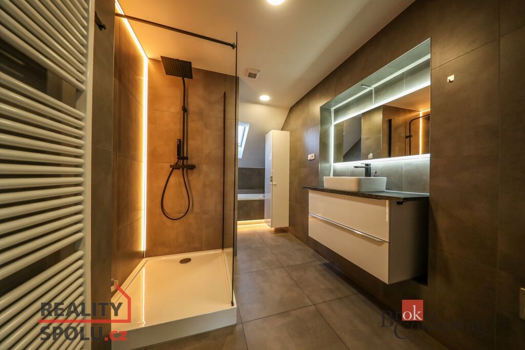 Byt se nachází v udržovaném bytovém domě se zahradou o 5 bytových jednotkách a 1 nebytového prostoru. Dům má dvě nadzemní podlaží a podkroví, kde se tento byt rozprostírá.