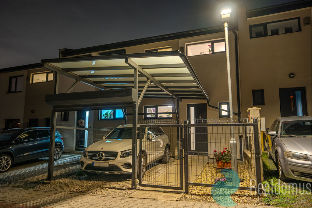 K jednotce náleží také předzahrádka o velikosti 25 m², jejíž součástí je kryté parkovací stání.