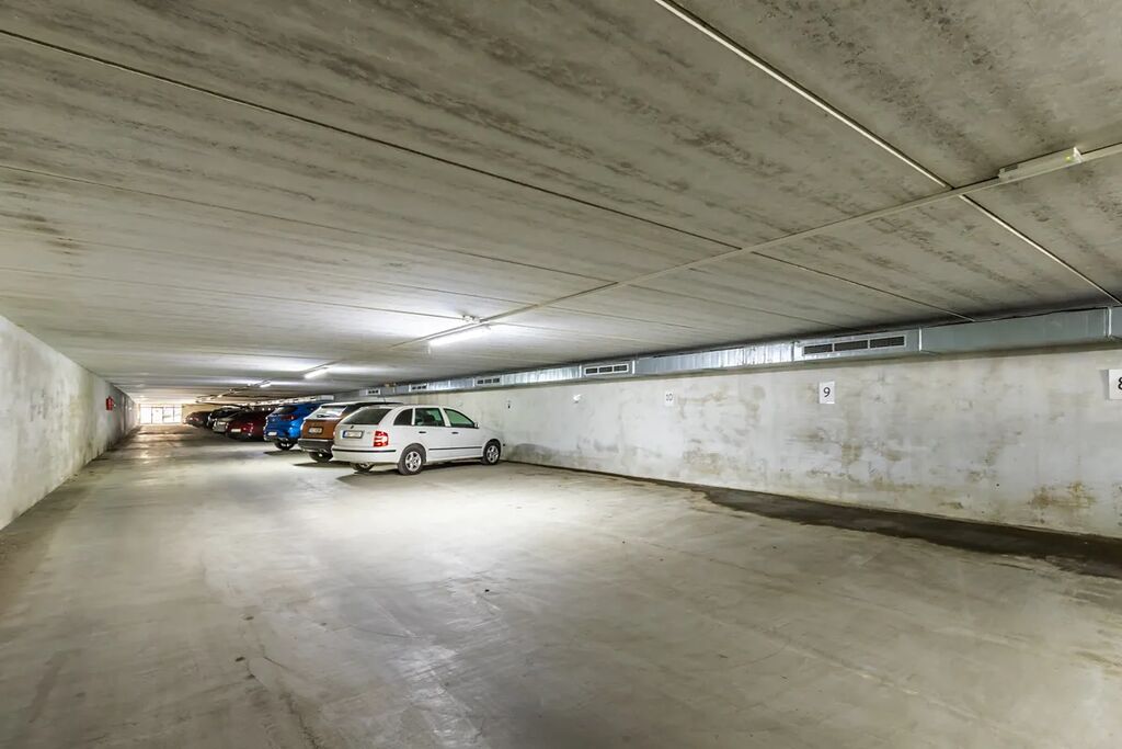 K bytu náleží sklepní kóje 3m2, vlastní garážové stání a navíc užívací právo k zahrádce o ploše cca 120m2 s vlastním přístupem.
