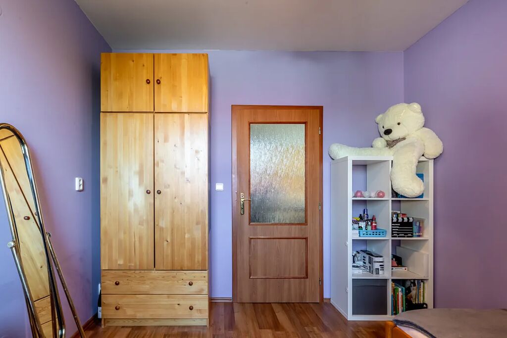 Byt je světlý, vzdušný a nabízí pohled do okolní zeleň ze všech svých místností.