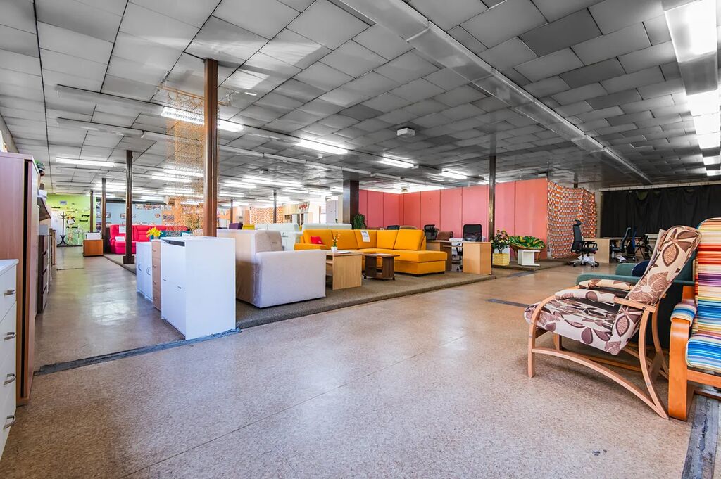 V přízemí se nachází obchodní prostor (aktuálně prodejna nábytku), skladové zázemí a technická místnost. V prvním patře jsou další obchodní prostory, kanceláře a sociální zařízení.
