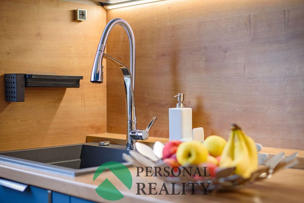 Dispozice jádra bytu byla velmi zajímavě a funkčně upravena. Také vznikla nová šatna, která k původní komoře zajišťuje další úložný prostor.