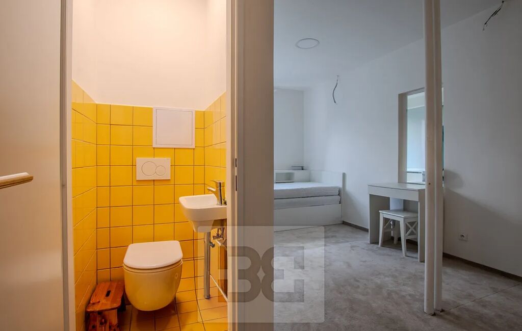 Koupelna se nachází hned za ložnicí, toaleta je oddělená.
