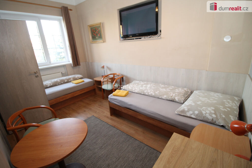 Dumrealit.cz Vám zprostředkuje koupi ubytovacího zařízení/hotelu s restaurací a terasou v Chodové Plané u Mariánských Lázní. Objekt je po kompletní rekonstrukci, která proběhla průběžně v minulých letech a to včetně elektroinstalace, vodoinstalace, odpadů, podlah, topného systému, fasády, plastových oken, zateplení a střechy včetně nových trámů. Dům je rovněž kompletně podřezaný s novou hydroizolací. Celková plocha 460 m² nabízí v přízemí restauraci s barem, kuchyní, terasou s kapacitou pro až 70 osob. V přízemí jsou toalety, technická místnost, toalety pro personál, technické zázemí, sklad. Do objektu vedou tři vchody, z přední části je přístupná restaurace, zadním vchodem se dostáváme do ubytovací části, kde v přízemí jsou dva pokoje každý s vlastní koupelnou. V prvním patře jsou 4 pokoje z nichž dva tvoří větší apartmán s koupelnou se sprchou a toaletou. Další dva pokoje mají každý svou koupelnu. Pokoje jsou kompletně zařízené včetně TV, lednice, postelí, skříní. Proti pokojům v prvním patře je bytová jednotka vhodná na předělání na další ubytovací kapacitu, případně ideální jako domov majitele. Bytová jednotka je dispozičně řešena jako 3+1, je zde velká krásná koupelna a terasa (cca 12 m²). V patře je dále sklad a dále úložné prostory na půdě, kde by bylo možné na základě projektu dostavět další patro a tím zvýšit kapacitu a výnosnost hotelu. Dům vytápí plynový kotel, v přízemí je navíc krb s krbovou vložkou, který je vždy dobrou doplňkovou alternativou. Ohřev teplé vody zajišťuje bojler. K dispozici je též studna, ze které je možné čerpat užitkovou vodu. Restaurace s hotelem jsou zavedené, majitel přenechá podnik kompletně vybavený. Parkování je možné na přilehlém parkovišti u objektu. V zadní části domu je garáž a samostatný uzamykatelný velký prostor na různé sezónní vybavení. Do deseti minut jízdy jsou Mariánské Lázně, které se staly součástí kulturního dědictví UNESCO, kde je veškeré občanské vybavení, nákupní centrum, banky a úřady. Chodová planá je turisticky oblíbená destinace díky zámeckému parku, vede tudy mezinárodní cyklotrasa Goldsteig, v plánu je otevření a oprava místního zámku. Opravené náměstí láká projíždějící k zastavení na oběd. Restaurace s hotelem jsou na perfektním viditelném místě, které nemůžete minout při cestě z Prahy/Plzně do Mariánských Lázní či do Chebu. Cena zahrnuje provizi a právní servis. Ev. číslo: 652909.