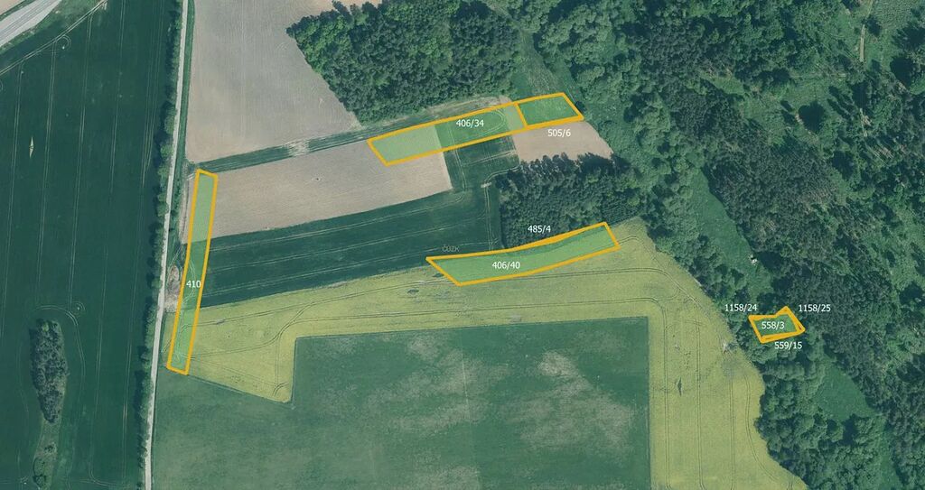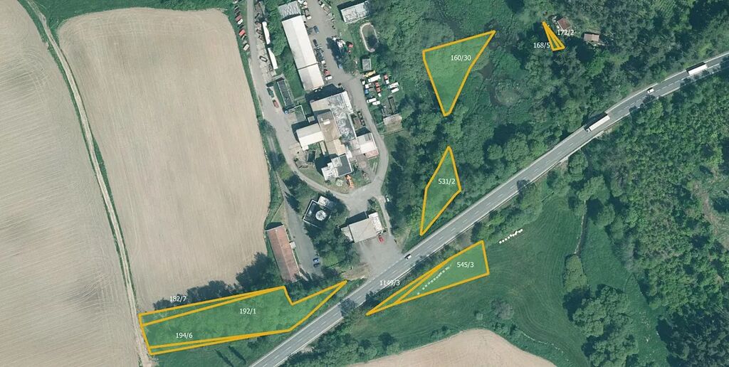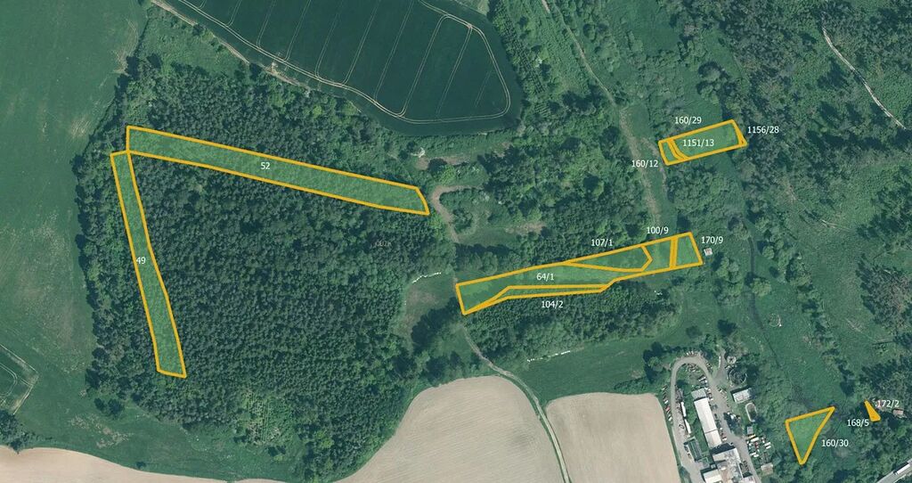 Pozemky jsou vedeny pod čísly 49, 52, 64/1, 100/9, 104/2, 107/1, 160/12, 160/29, 160/30, 168/5, 170/9, 172/2, 182/7, 192/1, 194/6, 238/1, 406/34, 406/40, 410, 485/4, 505/6, 531/2, 545/3, 558/3, 559/15, 584, 714/10, 720/6, 809/1, 1002/9, 1002/30, 1002/31, 1060, 1061, 1143/10, 1149/3, 1151/13, 1156/28, 1158/24 a 1158/25.