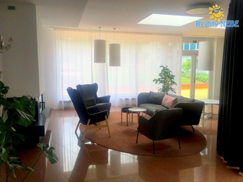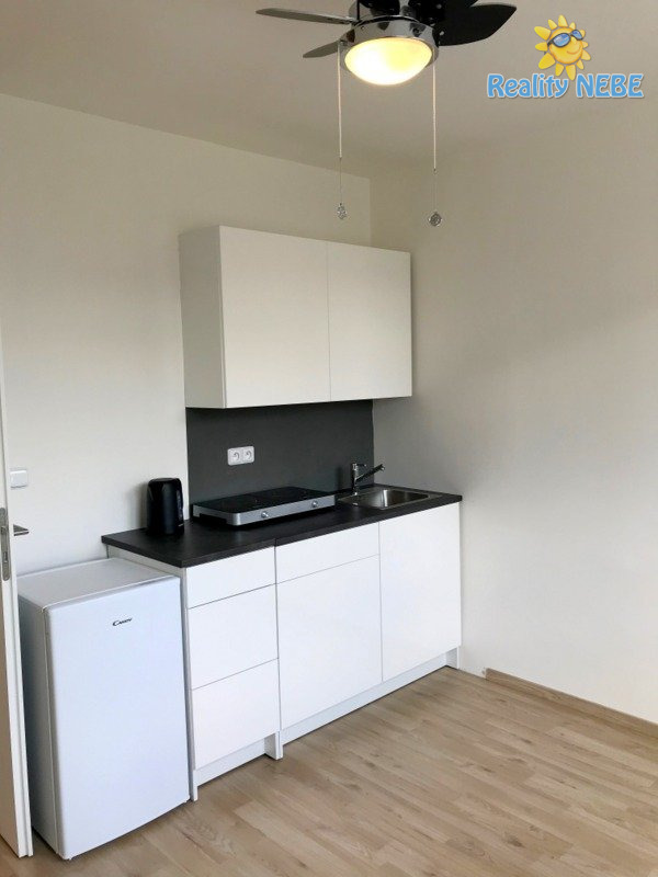 Pronájem bytu 1kk na ulici Peroutkova přímo v Rezidenci V Bloku v Praze 5 Jinonice v blízkosti metra Jinonice. Byt pro 1 osobu od 1.12. Nachází se v 5. patře s výtahem, má vstupní chodbu s věšákem, zrcadlem, koupelna se sprchovým koutem, wc umyvadlem, zrcadlem, žebrovým topením. Pokoj s výhledem na Prahu a kuchyňským koutem s indukčním dvouvařičem, lednicí s mrazničkou, rychlovarnou konvicí, světlem s větrákem a přípojnou na internet. Současný nájemník ponechá většinu nábytku viz. video (šatní skříň, sedačka, stolky). Plovoucí podlaha, plastová okna se žaluziemi. Do domu vcházíte přes prostorné, reprezentativně a moderně společné prostory s recepcí 24h, ostrahou, fitness centrum, relaxační zóna s krbem, terasa se zahradou s grilem a prádelna. Pračka a sušička ve společných částech domu. Byt je pro 1 osobu. Parkovací stání za příplatek.