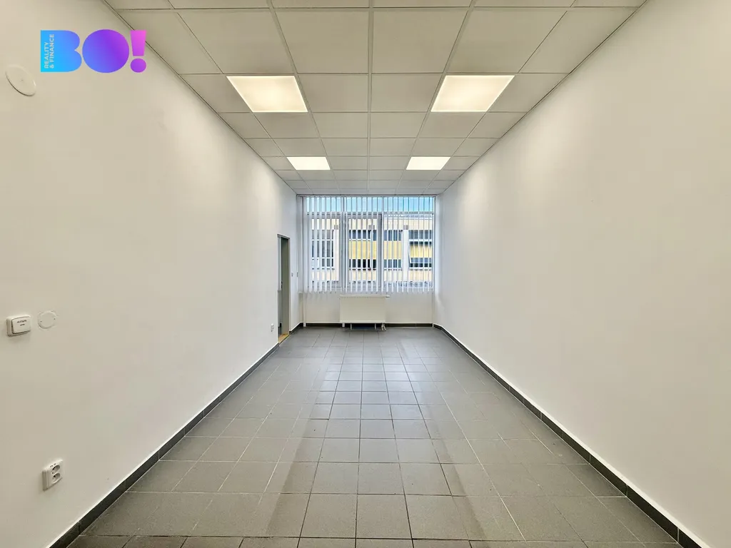 Kancelář je situovaná v klidné části administrativní budovy s výbornou dostupností, pár kroků od hlavní třídy a všech služeb. Interiér je laděn do čistého, moderního stylu – keramická dlažba, podhledové osvětlení, velká okna s vertikálními žaluziemi a decentní barevnost vytvářejí profesionální, ale zároveň příjemné pracovní prostředí.