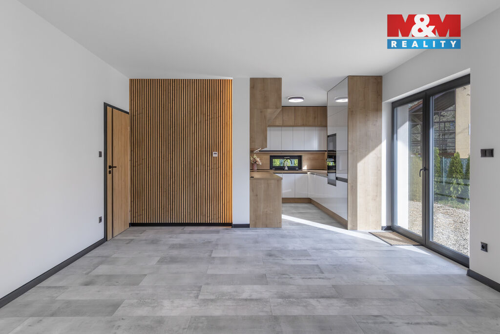 Nabízíme Vám k prodeji novostavbu rodinného domu o dispozici 3+kk v klidné části obce Petrovice u Karviné s užitnou plochou 77 m2 a zahradou o výměře 234 m2, přes cestu k nemovitosti náleží ještě tři parkovací místa. Dům je vytápěn tepelným čerpadlem vzduch-voda, rozvody tepla jsou umístěny v podlaze. Při vstupu je technická místnost s WC, kde je místo i pro pračku a sušičku. V koupelně WC, vana, sprchový kout a umyvadlo. Ve společenském prostoru je k dispozici již plně vybavená kuchyňská linka, prostor pro jídelnu a obývací pokoj s atraktivním výstupem na terasu . Z prostorné chodby jsou dále vstupy do dvou neprůchozích pokojů. Náš hypoteční specialista Vám nabídne nejvhodnější financování této nemovitosti. Doporučujeme prohlídku.