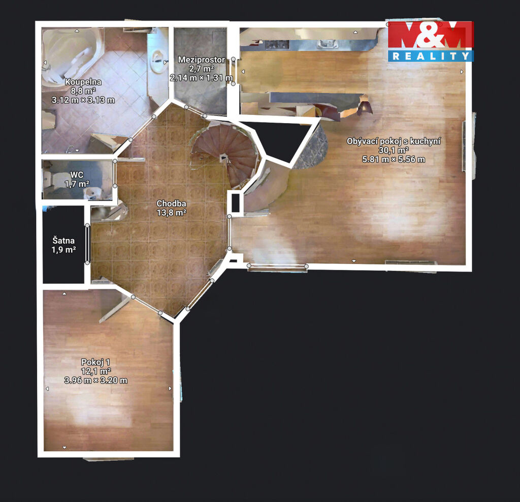 • dvě koupelny, pracovna a dostatek úložného prostoru,
