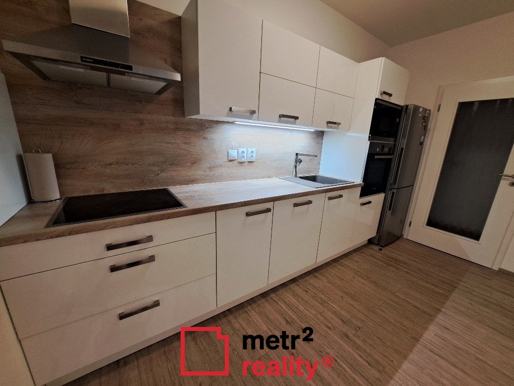 Pronájem nadstandartního bytu 2+kk s terasou a zahrádkou v blízkosti centra města Olomouce na ulici Rokycanova. Součástí pronájmu je i garážové stání v suterénu domu (1.500,- Kč / měsíc). Byt se nachází v 1. NP novostavby domu, tvoří ho prostorná vstupní chodba vybavena sestavou věšáku, botníku a zrcadla, ložnice se vstupem na terasu s vestavěnou šatní skříní na míru, obývací pokoj se vstupem na terasu a s kuchyňským koutem (kuchyňská linka je vybavena vestavěnou elektrickou a mikrovlnnou troubou, el. varnou deskou, myčkou, lednicí a mrazákem), koupelna se sprchovým koutem a samostatné wc. Oba pokoje jsou vybaveny nástěnnou televizí, na podlaze kvalitní vinylová podlaha, v obou oknech dálkově ovládané venkovní žaluzie, rekuperace, v koupelně podlahové vytápění. Byt má užitnou plochu 59 m2, plocha terasy se zahrádkou činí 88 m2. K bytu náleží zděný sklep v suterénu domu. Cena je uvedená bez záloh na služby (3.000,- Kč / měsíc) a elektrickou energii, která bude přepsána na nájemníka. Jistota ve výši dvou měsíčních nájmů. Byt je k dispozici ihned. PENB nedodán, z tohoto důvodu uváděna en. třída G.