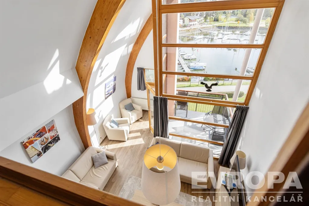 Nabízíme k prodeji mezonetový apartmán 4+kk s prostorným balkonem a jedinečným výhledem na hladinu Lipna. Apartmán je součástí prestižního projektu Marina Lipno Resort, který se nachází přímo v centru Lipna nad Vltavou a patří mezi nejznámější a nejlépe hodnocené rezidenční areály v této oblasti. Kombinuje vysoký standard, promyšlenou dispozici a polohu v bezprostřední blízkosti vody.