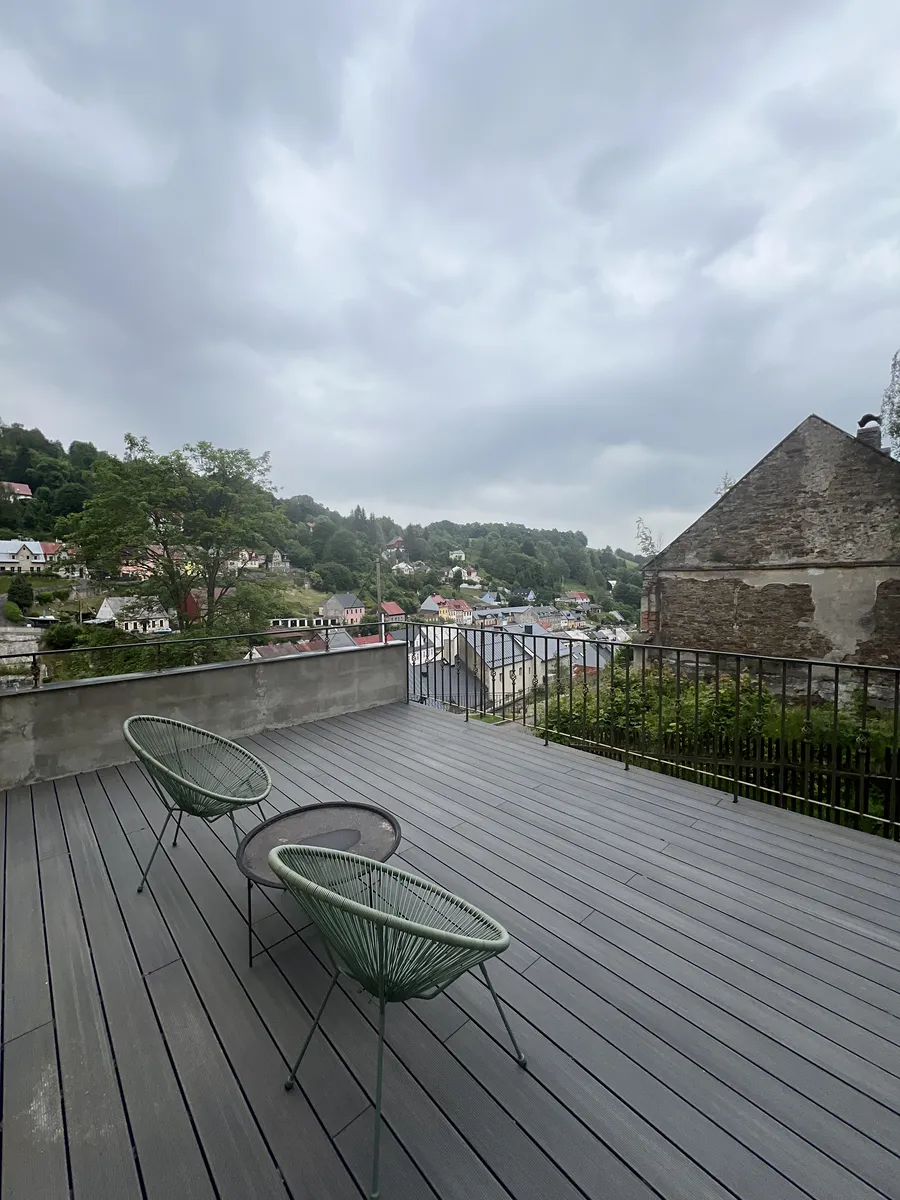 Nabízím k prodeji krásný apartmánový dům se třemi novými samostatnými jednotkami ve městě Jáchymov v Krušných horách. Dům prošel kompletní rekonstrukcí v r. 2022. Při rekonstrukci byly použité jen kvalitní materiály, jako pod omítková tělesa v koupelnách, dřevěná podlaha, plynové vytápění s ovládáním přes aplikaci, byly dělány komplet nové rozvody elektřiny, odpadů, vody i topení. Apartmány byly rekonstruovány v horském stylu a jsou kompletně vybaveny kvalitním nábytkem a krásnými kuchyněmi. Byty v přízemí a v podkroví jsou dispozičně řešeny jako 2kk, každý o výměře 50 m2, byt v 1.NP je 3kk je o výměře 60 m2 s velkou terasou o výměře 27 m2 s krásným výhledem na město. Kompletně se zde dá ubytovat až 16 lidí. Apartmány byly stabilně pronajímaný za 15.000 Kč týdně za apartmán. Na pozemku je garáž o výměře 27 m2, 1 parkovací stání a další možnosti parkování jsou cca 50 m od domu. K domu patří pozemek o celkové výměře 367 m2.