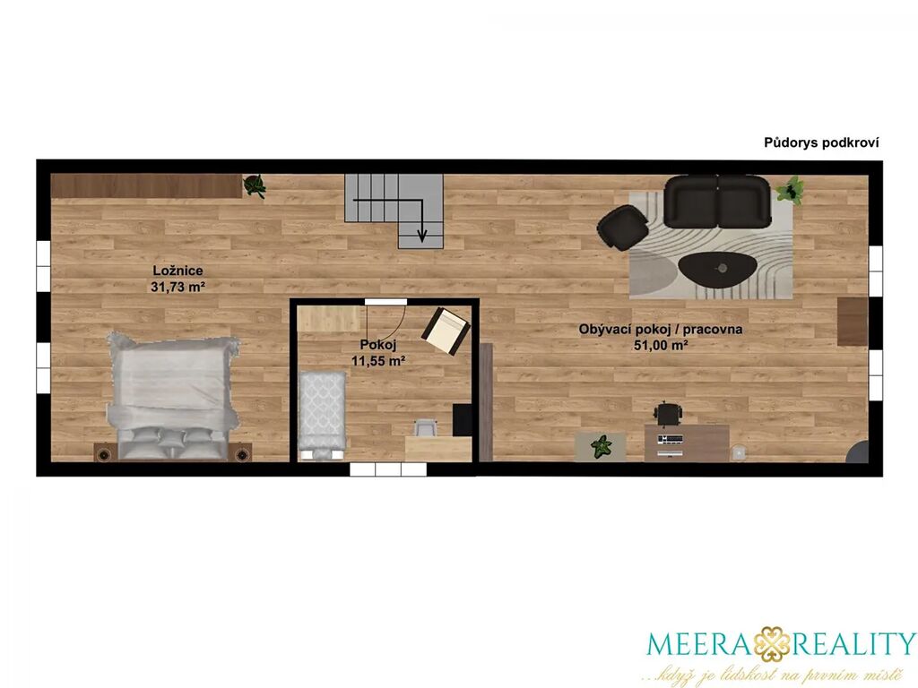 Díky své dispozici i poloze nabízí velký potenciál k vytvoření útulného rodinného sídla nebo rekreačního domu podle vlastních představ.