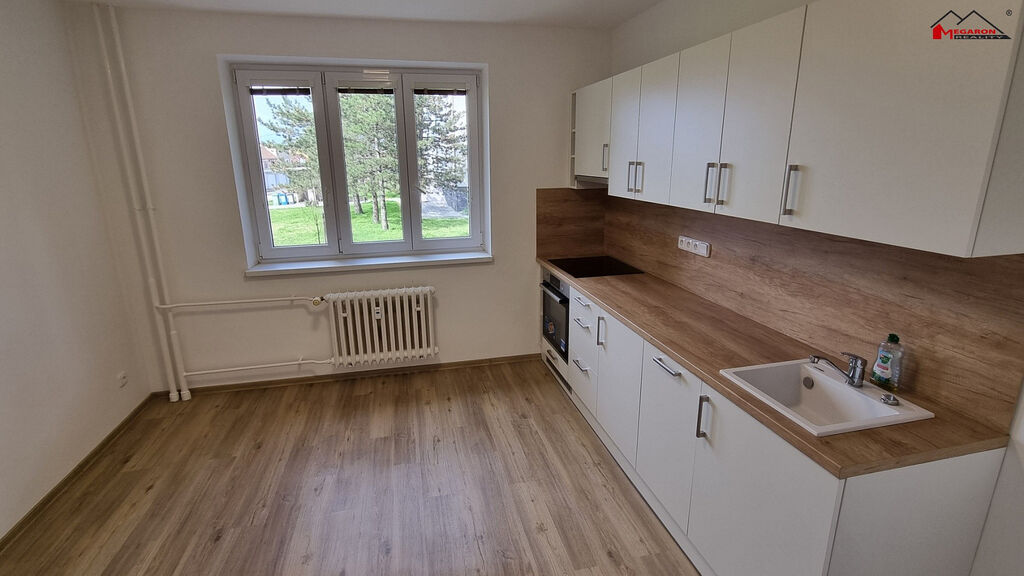 Exkluzivně nabízíme k pronájmu velmi pěkný byt ve vlastnictví o velikosti 1+1, který se nachází v Břeclavi, na ul. U Jánského dvora, v 1. vyvýšeném NP/4 zděného domu. Celková podl. plocha je 46 m². Dispozice – kuchyně, pokoj, velká chodba, koupelna, WC. Příslušenstvím bytu je sklep. Byt je po generální rekonstrukci, kde je vše nové – kuchyňská linka se spotřebiči (indukční varná deska, elektr. trouba, myčka, digestoř,) rozvody elektřiny, vody a odpadů, koupelna, WC, omítky, podlahy (v obývacím pokoji parkety po renovaci, v ostatních prostorách nově vinyl a v koupelně a WC dlažba), osvětlení, plastová okna (již byla). Do bytu je zavedený optický kabel (internet, tv). Bytový dům je po revitalizaci – zateplení, vnější omítky, rozvody IS ve stoupačkách, vchodové dveře. Ideální bydlení pro 1 – 2 osoby bez zvířat. Nájemné je 12.000,-Kč/měsíc + zálohy na energie ve výši 3.750,-Kč/měsíc. Kauce je ve výši 2 měsíčních nájmů. Nájemce neplatí provizi. Třída energetické náročnosti C. Byt bude k nastěhování od 1.12.2025.