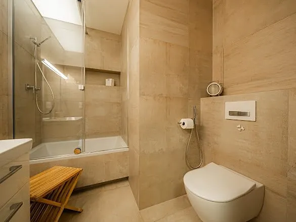 V rámci rekonstrukce byly v bytě i v domě provedeny nové rozvody vody, odpadů a plynu.