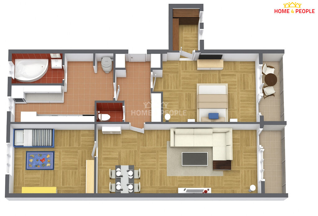 • dvě ložnice – jedna se šatnou a vstupem na druhou lodžii, druhá je aktuálně využívána jako boxerna,