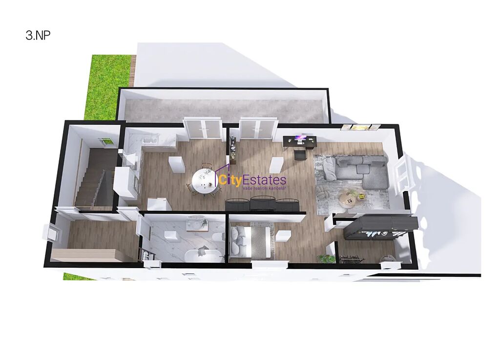 Nabízíme k prodeji nový třípodlažní dům, postavený na půdorysu původně rodinného domu, kde je možné dokončit vnitřní prostory buď v původním záměru jako dva byty o velikosti 67,9 a 86,7 m2 + terasy 89,4m2 v patrech. Přízemí pak propojené s garáží s celkovou plochou 161,8m2 užívat jako komerční obchodní/skladovací prostor.