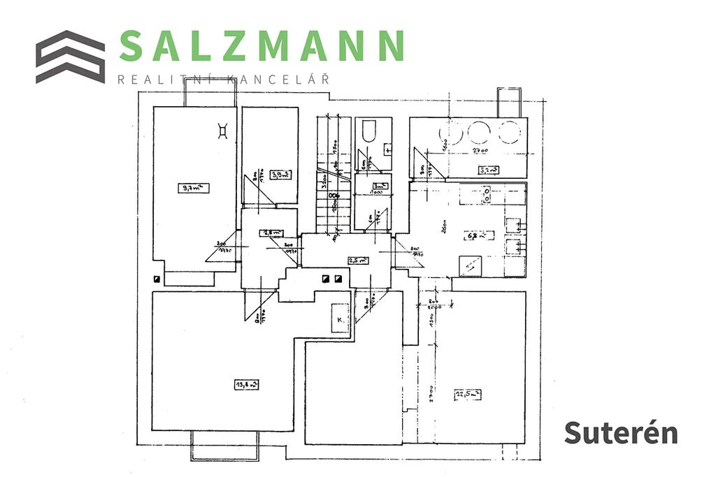 - Suterén: čtyři prostorné místnosti, spižírna, technická místnost s kotlem a pračkou.
