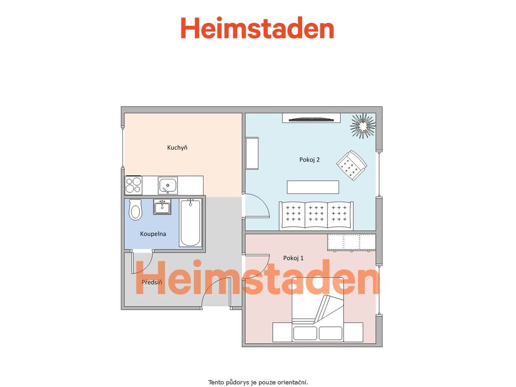 Bytová jednotka působí velmi příjemně a vzdušně, okna jsou situována na dvě světové strany, což zajišťuje dostatek denního světla po celý den. V předsíni a kuchyni je položeno kvalitní PVC stejně jako v obou pokojích. Kuchyň je vybavena krásnou a novou kuchyňskou linkou s vestavěnými spotřebiči a prostorem pro pračku. Koupelna je vybavena vanou a přípojkou na pračku, toaleta je samostatná. Jeden z pokojů je průchozí, což z bytu činí ideální domov pro pár nebo menší rodinu.