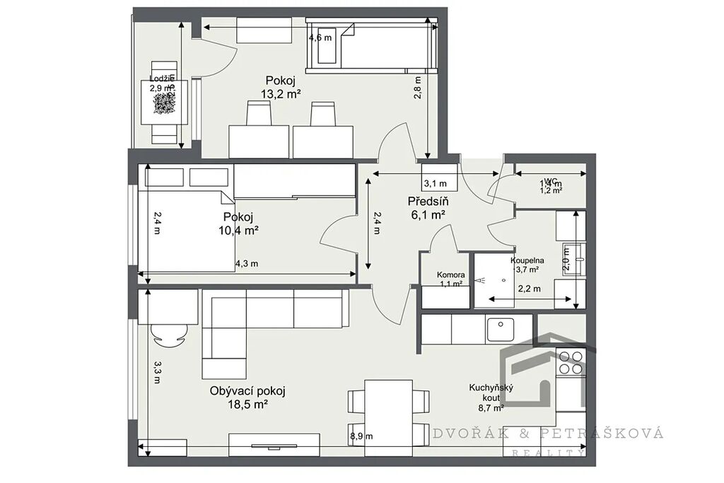 Realitní společnost Dvořák&Petrášková reality vám nabízí k prodeji byt 3+kk v Horních Měcholupech.
