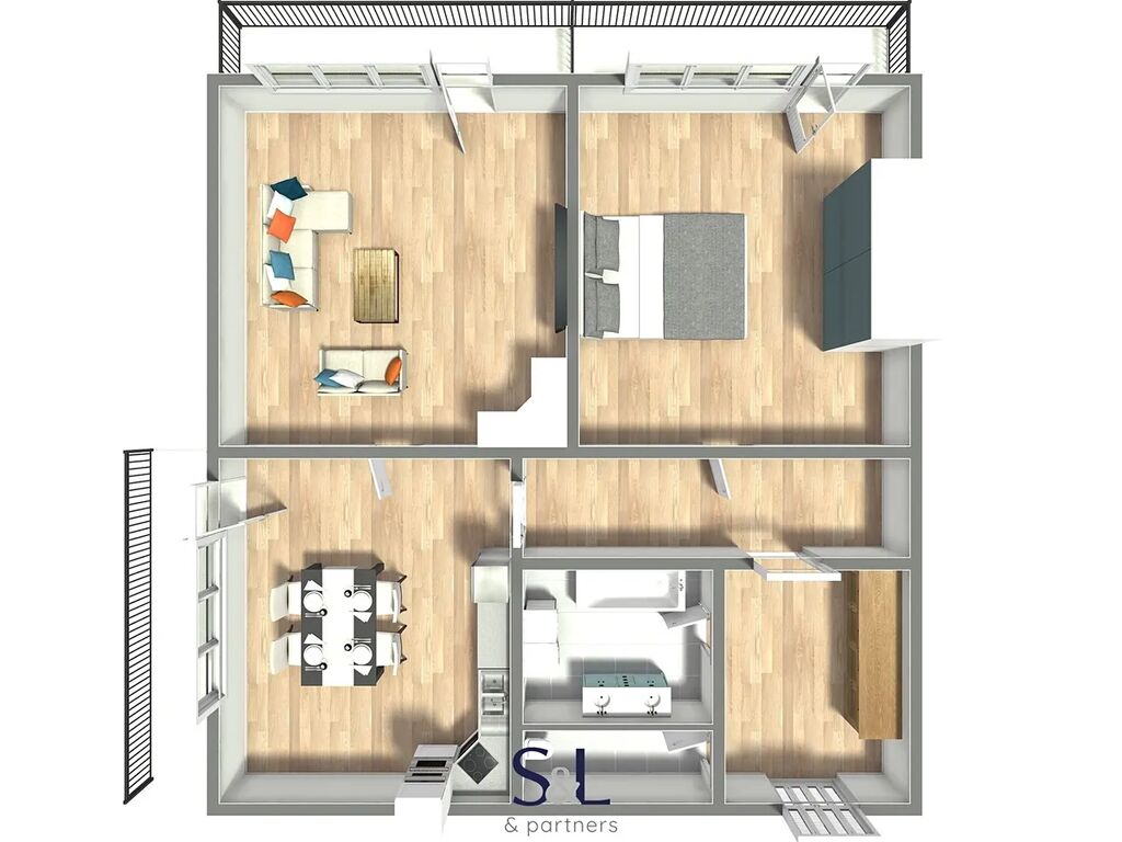 Výjimečností tohoto bytu jsou tři lodžie, z nichž se naskýtá nádherný výhled na malebné Českolipsko. Tento prostor je ideální pro relaxaci a odpočinek po náročném dni. Díky vysokému podlaží je byt velmi světlý a poskytuje dostatek soukromí.