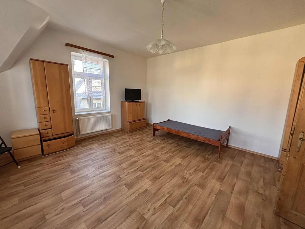 V předsíni se nachází elektrokotel. Z předsíně je vstup do koupelny (sprchový kout, WC, umyvadlo a automatická pračka) a do menší průchozí místnosti, kde je nová kuchyňská linka s elektrickým sporákem. Z této místnosti se vstupuje do prostorného rohového pokoje s 3 okny. Obě místnosti mají plovoucí podlahu, ve velkém pokoji je nová podlaha a nové lišty. Byt je částečně vybaven. Topení je zde elektrické. K bytu náleží prostorný zděný sklep, vlastní půdní komora a spíž v mezipatře. Parkování je na veřejné komunikaci.