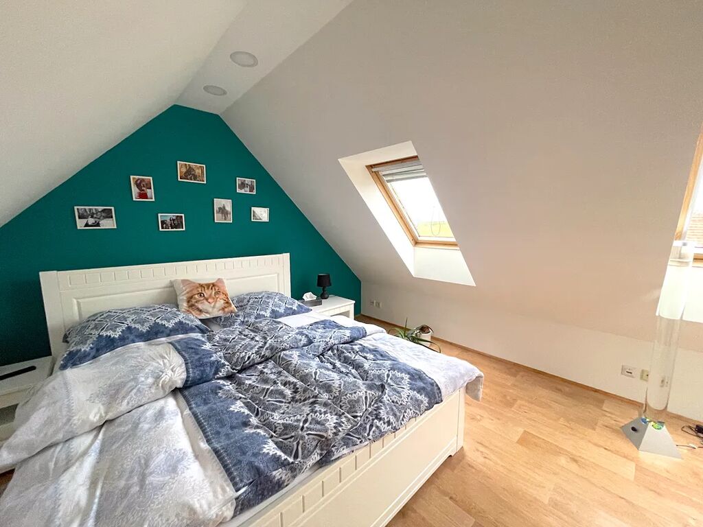 Vnitřní dispozice jsou obývací pokoj s kuchyňským koutem s vestavěnými spotřebiči, pokoj v dolní části bytu, dvě ložnice v horním patře (podkrovní pokoje), koupelna s vanou, samostatného WC. Vybavení bytu je současných nájemníků.