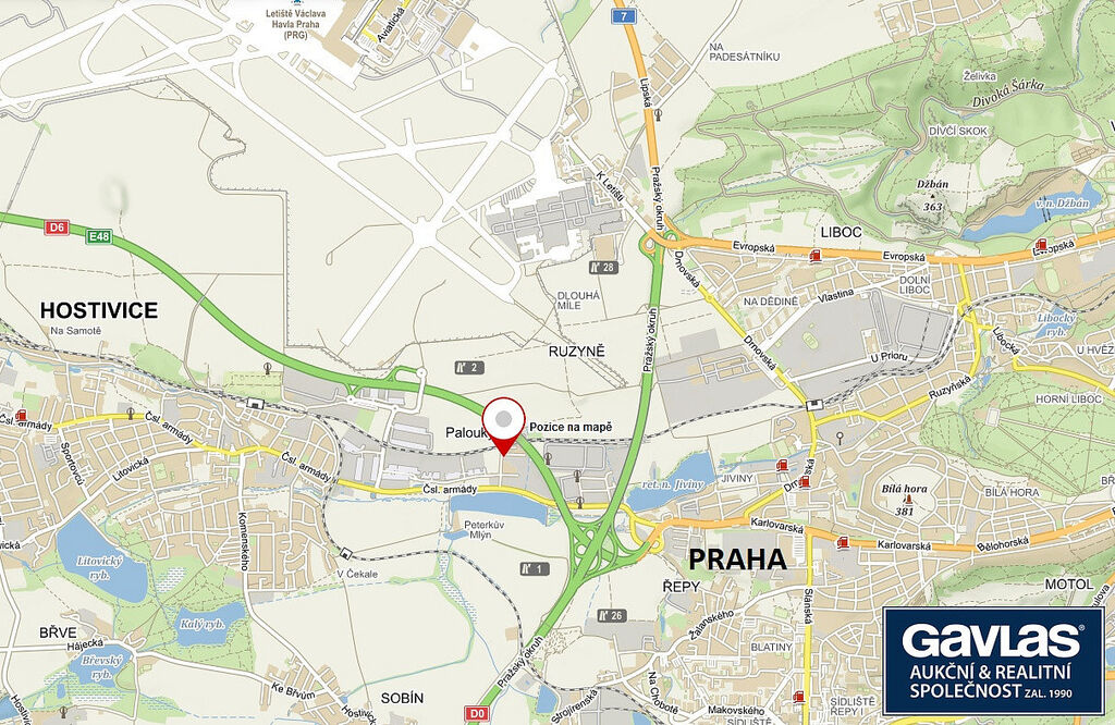 • Lokalita: Areál leží v blízkosti letiště, u Pražského okruhu i dálnice D6 na Karlovy Vary a železnice