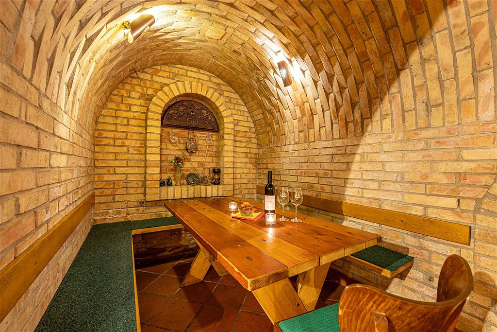 Nabízený objekt tří vzájemně propojených vinných sklepů nabízí více než 500 m² užitné plochy. Najdete zde nejen sedm kvelbených sklepů různých velikostí s více než stovkou míst k posezení, ale také kuchyni, kanceláře, sklepní prostory se stovkami nejrůznější nádob i archivních boxů. V horních podlažích je rovněž řada skladů s místy pro uskladnění vinařského vybavení a strojů a v podkroví jednoho ze sklepů se nabízí dokonce možnost ubytování až pro 20 osob.