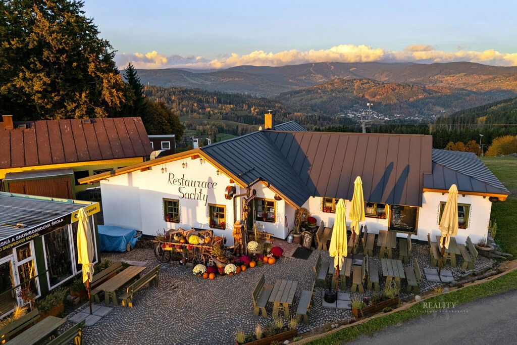 Na dosah máte Ski areál Šachty – sjezdovky, večerní lyžování, běžkařské tratě. A po sportu? Restaurace Šachty po rekonstrukci s velkorysými prosklenými výhledy přímo na sjezdovku a poctivou kuchyní z lokálních surovin. Celoročně ideální adresa pro rodinný relax i stylové víkendy.