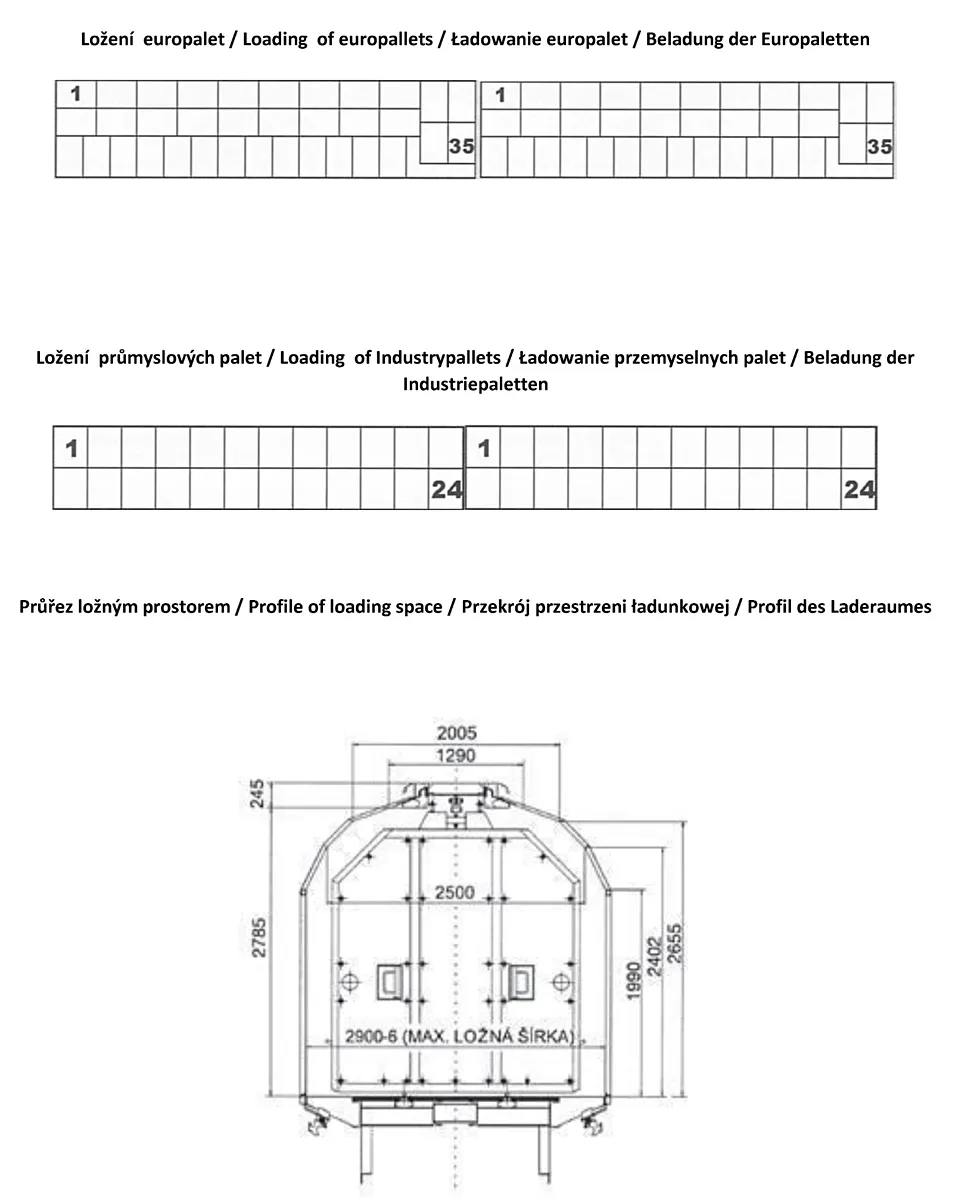 Prostory jsou přístupné bočními posuvnými uzamykatelnými dveřmi, širokými max. 6,2 m. Do prostoru lze naložit až 24,5 t zboží. Prostor je vhodný pro uskladnění kusového, ale i paletizovaného a velkoobjemového zboží. Díky systému posuvných stěn je manipulace se zbožím a přístupnost optimální. Podlaha je uzpůsobena pro pohyb VZV a paletového vozíku. Všechny skladové vagóny jsou vybaveny elektrickou zásuvkou (230V) a osvětlením.