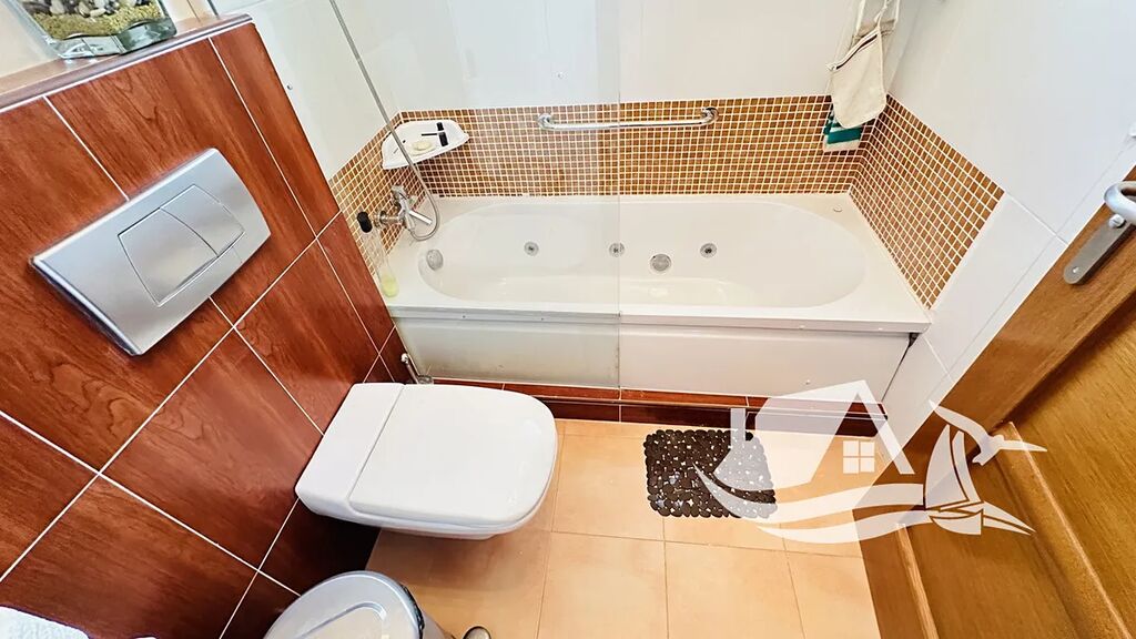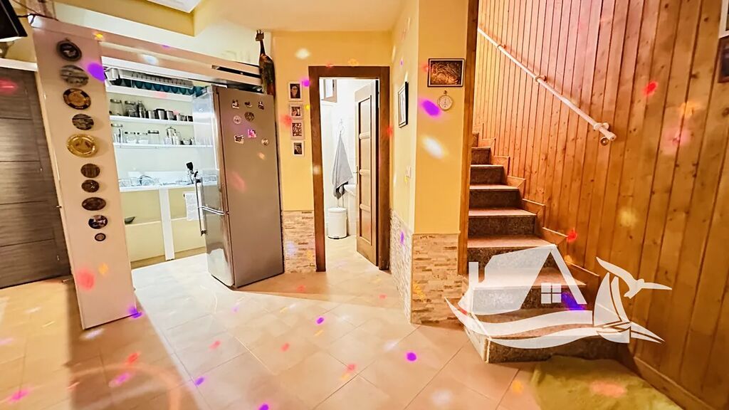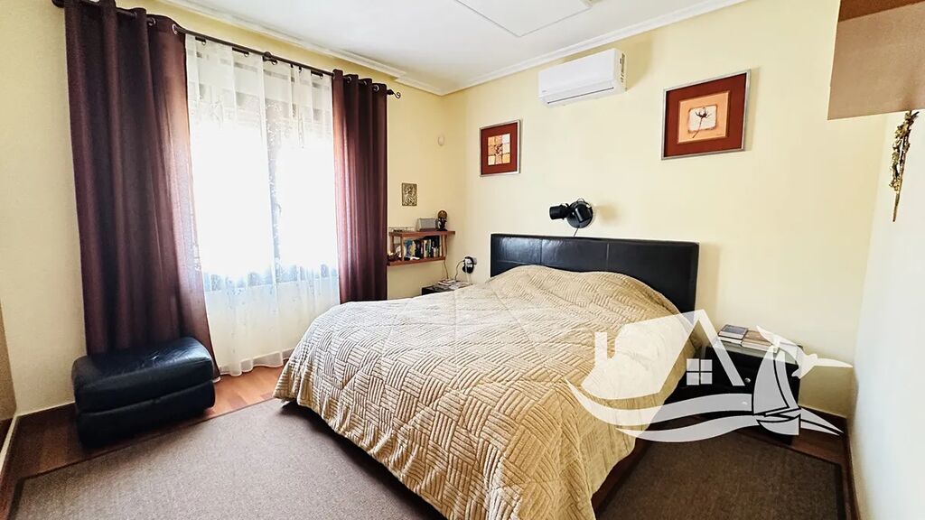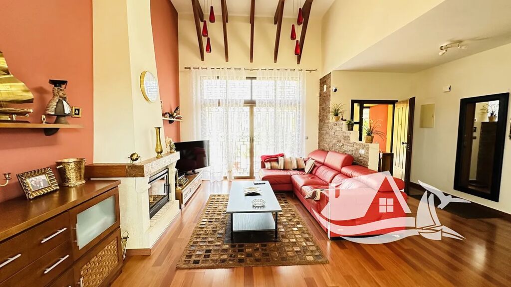 Interiér vily tvoří čtyři ložnice a tři koupelny, z nichž jedna je vybavena masážní vanou Jacuzzi. Obývací pokoj s krbem působí útulně a zároveň elegantně, přičemž velká okna přinášejí do interiéru spoustu přirozeného světla. Moderní kuchyně je plně vybavená a doplněná o praktickou komoru i technickou místnost. Komfort v domě zajišťuje klimatizace i infračervené topení – díky tomu se zde bydlí příjemně po celý rok.