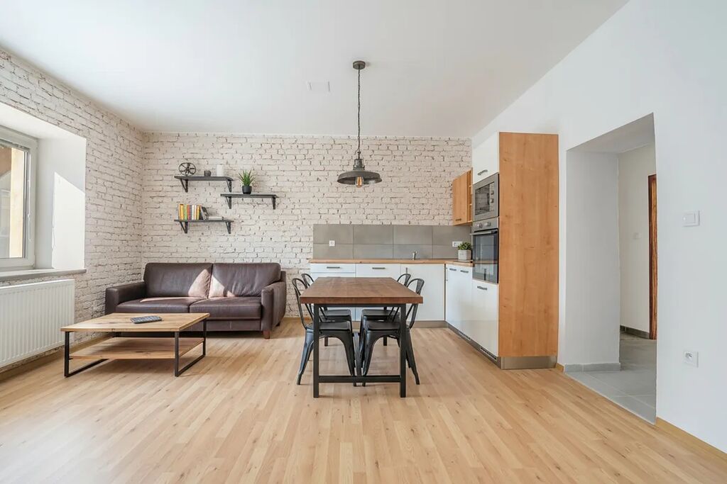 Bytová jednotka 2+kk nabídne podlahovou plochu 44,72 m2 k níž náleží komora na patře vedle bytu o výměře cca 1,2 m2 a zděná kolna za domem o výměře cca 3,5 m2.