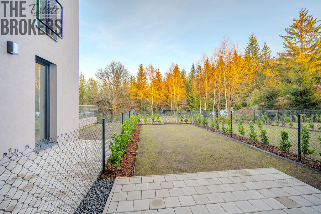 Byt o celkové ploše 95,2 m² disponuje prostorným obývacím pokojem s přípravou na kuchyňskou linku, koupelnou, praktickou šatnou a dvěma ložnicemi. K bytu také náleží soukromá předzahrákda o velikosti 233 m² s terasou 12,5 m² ideální pro ranní kávu nebo večerní relaxaci s výhledem na okolní krajinu. V ceně nemovitosti je zahrnuta i sklepní kóje, která poskytuje dostatek prostoru pro uložení sezónních věcí nebo jiných potřebných předmětů.
