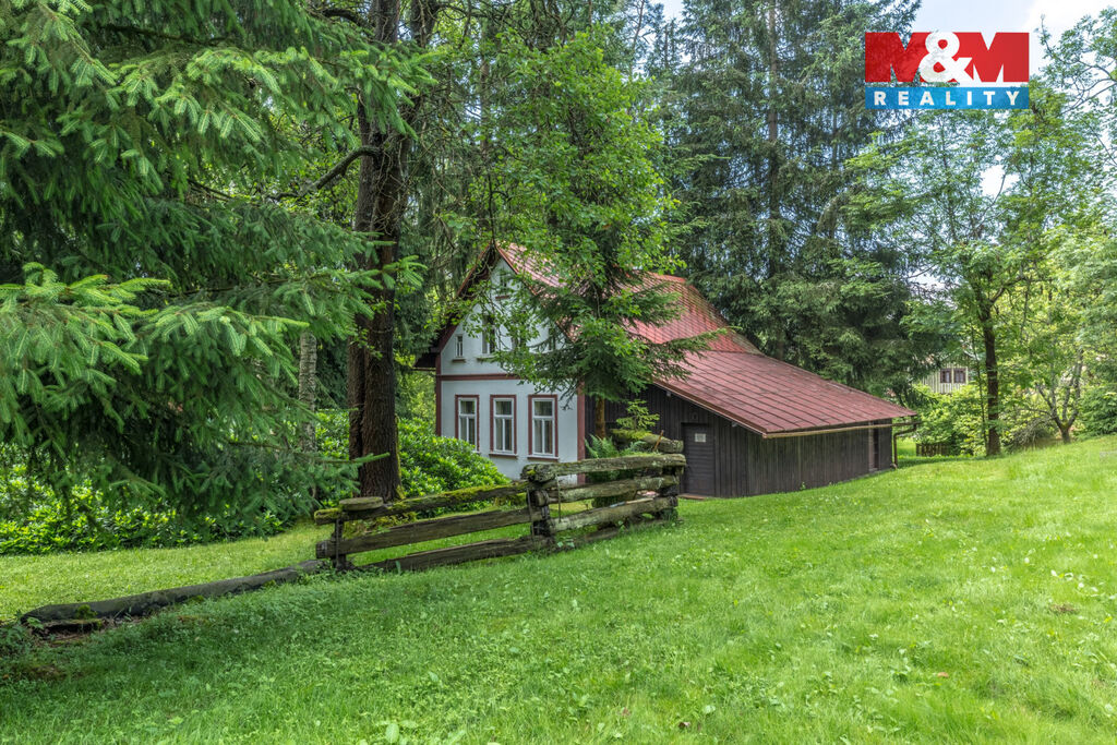 Nabízíme k prodeji chalupu v Josefově Dole, místní části Antonínov s pozemky o celkové výměře 1.277 m2. Nemovitost je v dobrém udržovaném stavu, je obyvatelná, nicméně se nabízí rekonstrukce pro větší komfort. V přízemí jsou dvě obytné místnosti, zádvěří a chodba propojená s dřevěnou přístavbou, kde se nachází sprchový kout, suché wc a dílna se skladem na dříví. Patro slouží ke spaní ve dvou místnostech, jedna pouze v létě. Rovinatá udržovaná zahrada je obklopena vzrostlými smrky a nabízí tak dostatek soukromí a dělá nemovitost výjimečnou.Přístup je zajištěn celoročně udržovanou obecní asfaltovou cestou, ve které vede vodovod a je na něj možné připojení. Celkově se jedná o krásné, velmi klidné místo v těsné blízkosti mnoha cyklostezek, běžeckých stop a lyžařských vleků. Novému majiteli se nabízí mnoho možností, jak s chalupou naložit, ať už se jedná o rekonstrukci, vybudování dalších pokojů, nebo ponechá původní stav a bude si užívat relax v této žádané lokalitě.