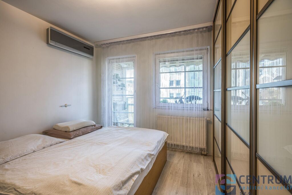 Byt vznikl vertikálním spojením dvou jednotek o dispozici 2+1, které lze v případě zájmu vrátit do původního stavu. Aktuální konfigurace nabízí pohodlné rodinné bydlení zejména díky dvěma koupelnám, pracovně, šatně a prostornému obývacímu pokoji. K propojení obou podlaží slouží příjemné dřevěné schodiště, které navazuje na pokoj určený pro posezení/relaxační zónu - tento prostor navazující na pracovnu lze snadno přizpůsobit individuálním potřebám. Každá z ložnic disponuje vlastní lodžií z toho horní je zasklená a vybavená elektricky ovládanou markýzou. Navíc je byt vybaven klimatizací. V obývacím pokoji a kuchyni je pro větší komfort podlahové topení