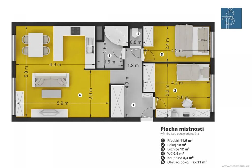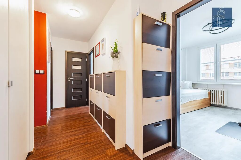 Byt nabízí prostorný obývací pokoj s kuchyňským koutem ideální pro rodinná rána či posezení s přáteli. Dva samostatné pokoje představují útulné útočiště po aktivním dni. Koupelna s vanou a oddělená toaleta navozují pocit komfortu a praktičnosti. Navíc tu máte komoru přímo naproti vstupním dveřím na chodbě, perfektní pro uložení věcí, které nechcete mít na očích.