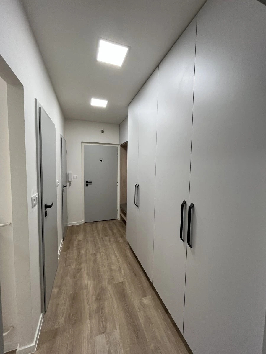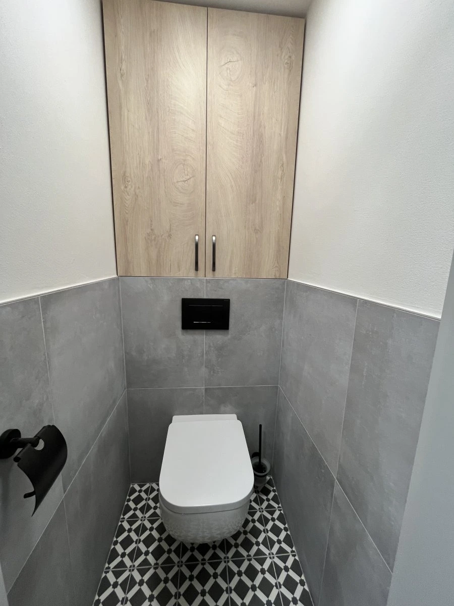 Při vstupu do bytu uvidíte prostornou chodbu s úložným prostorem a vstupy do jednotlivých místností. Dispozice nabízí koupelnu s umyvadlem, sprchovým koutem, úložnými prostory. Toaleta se nachází zvlášť.
