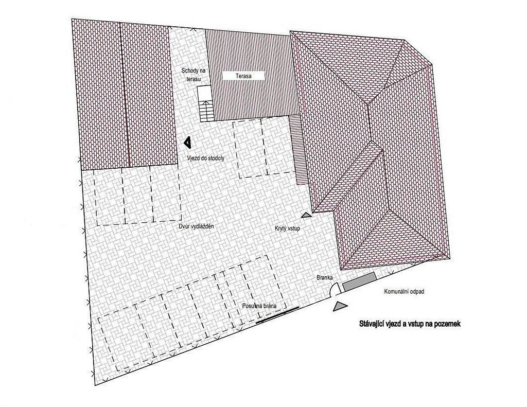 Na pozemku o velikosti 784 m² stojí také bývalá stodola, která může sloužit např. k parkování.