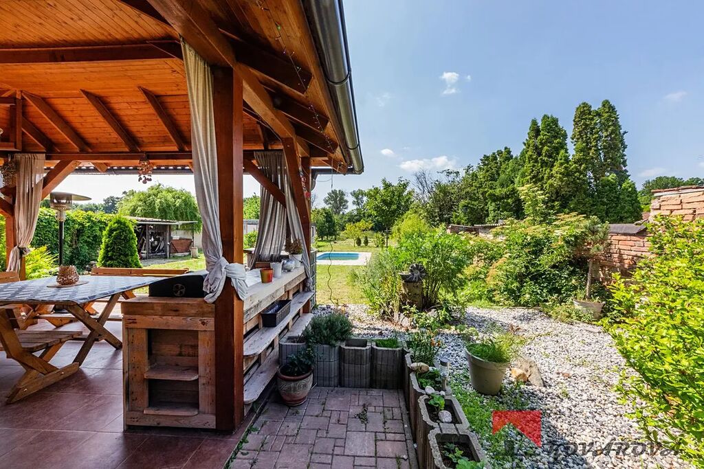 Součástí nemovitosti je udržovaná zahrada s pergolou, která nabízí ideální zázemí pro relaxaci i posezení s přáteli u sklenky vína. Dále zde naleznete bazén a kůlnu. Parkování je možné na pozemku i před domem.