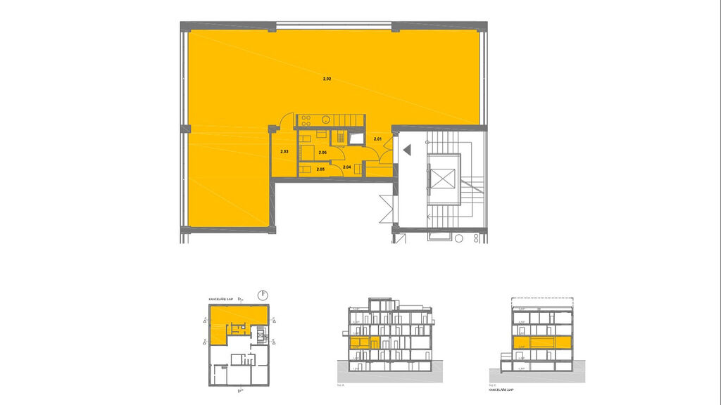 Nabízíme k pronájmu moderní kancelářské prostory v klidné části Prahy. Tato novostavba z roku 2016 se nachází v čtvrti, kde zástavbu tvoří hlavně bydlení a kanceláře, poskytující tak klidnou, avšak strategicky výhodnou polohu. Kanceláře jsou umístěny v patrovém skeletovém domě s užitnou plochou 145 m².